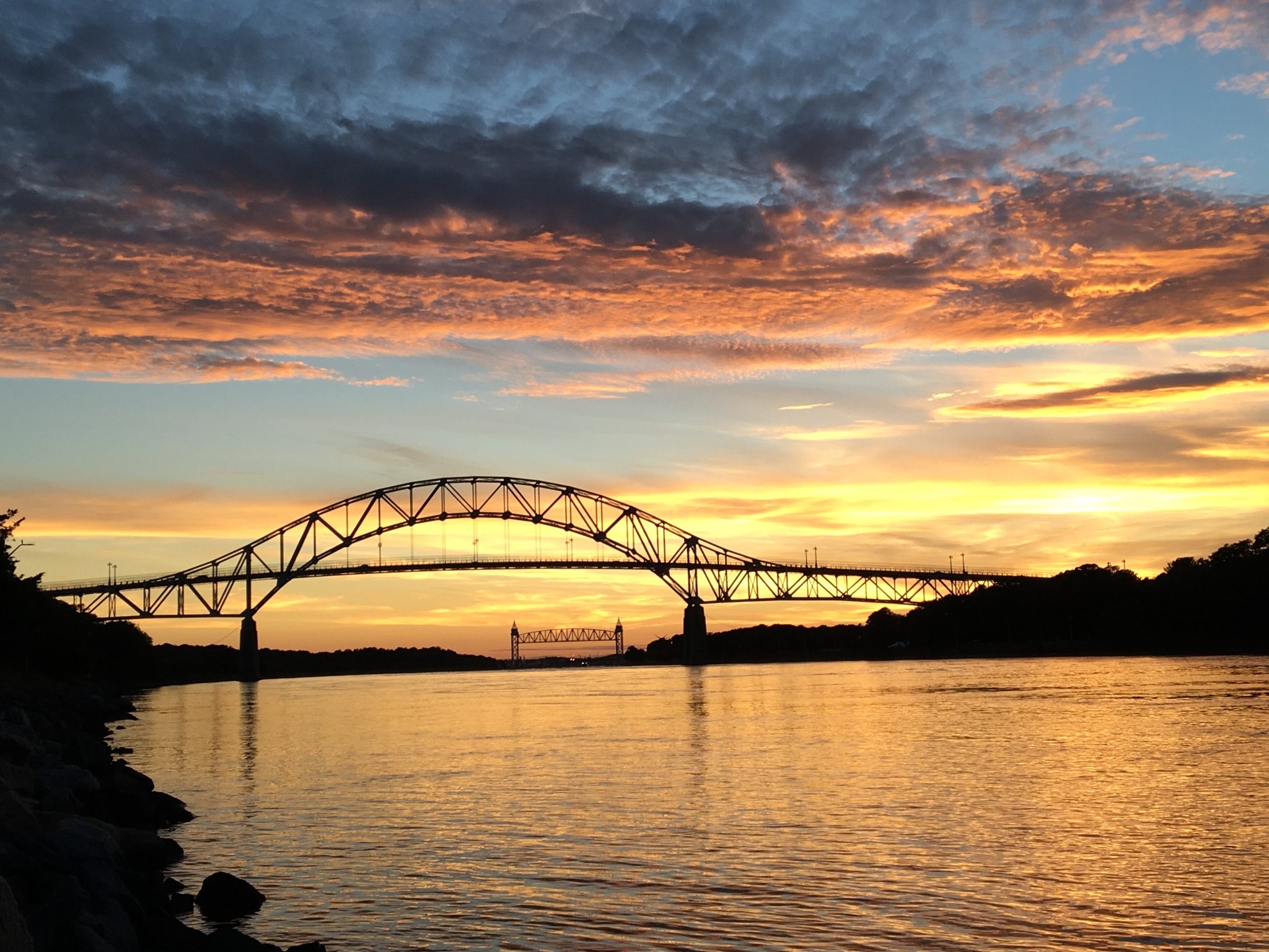 In the summer I live on Cape Cod and bike on the Shining Sea TrailĀ as well as the Cape Cod canal trail. Above is sunset along the canal.