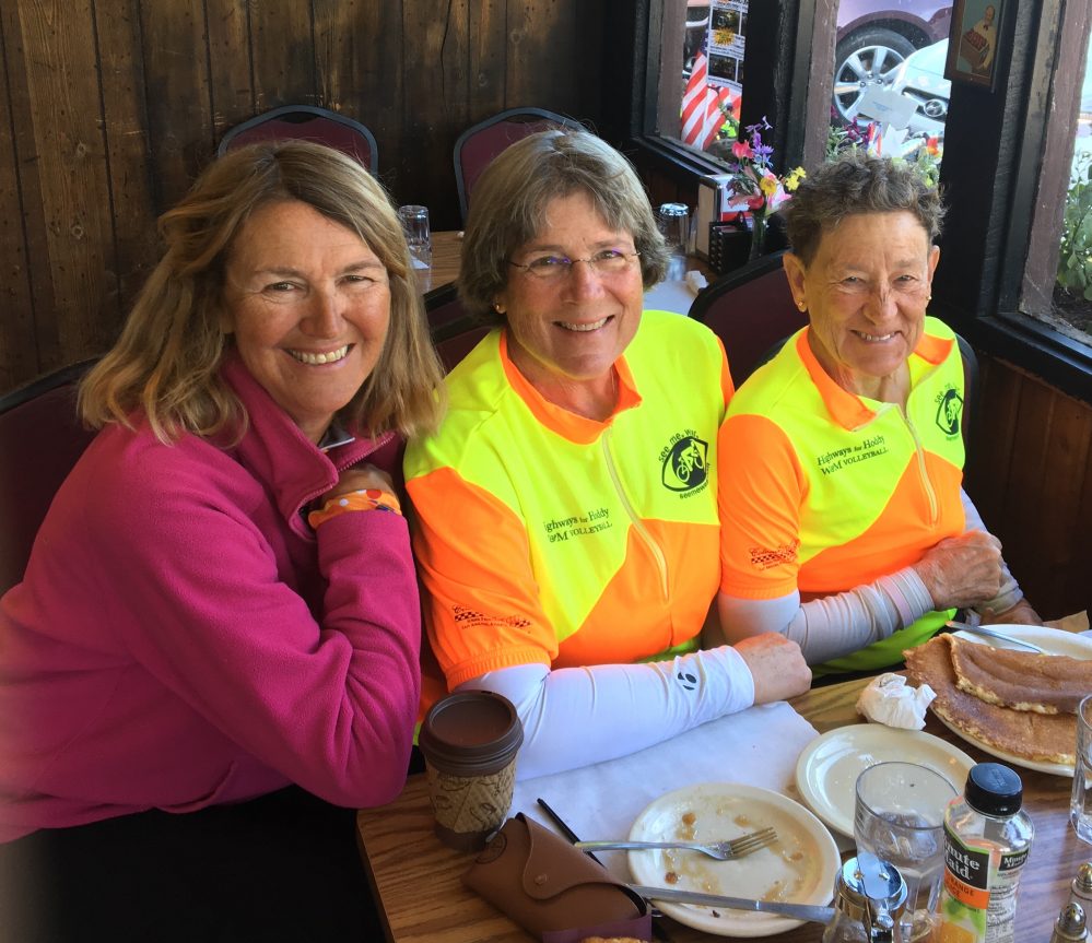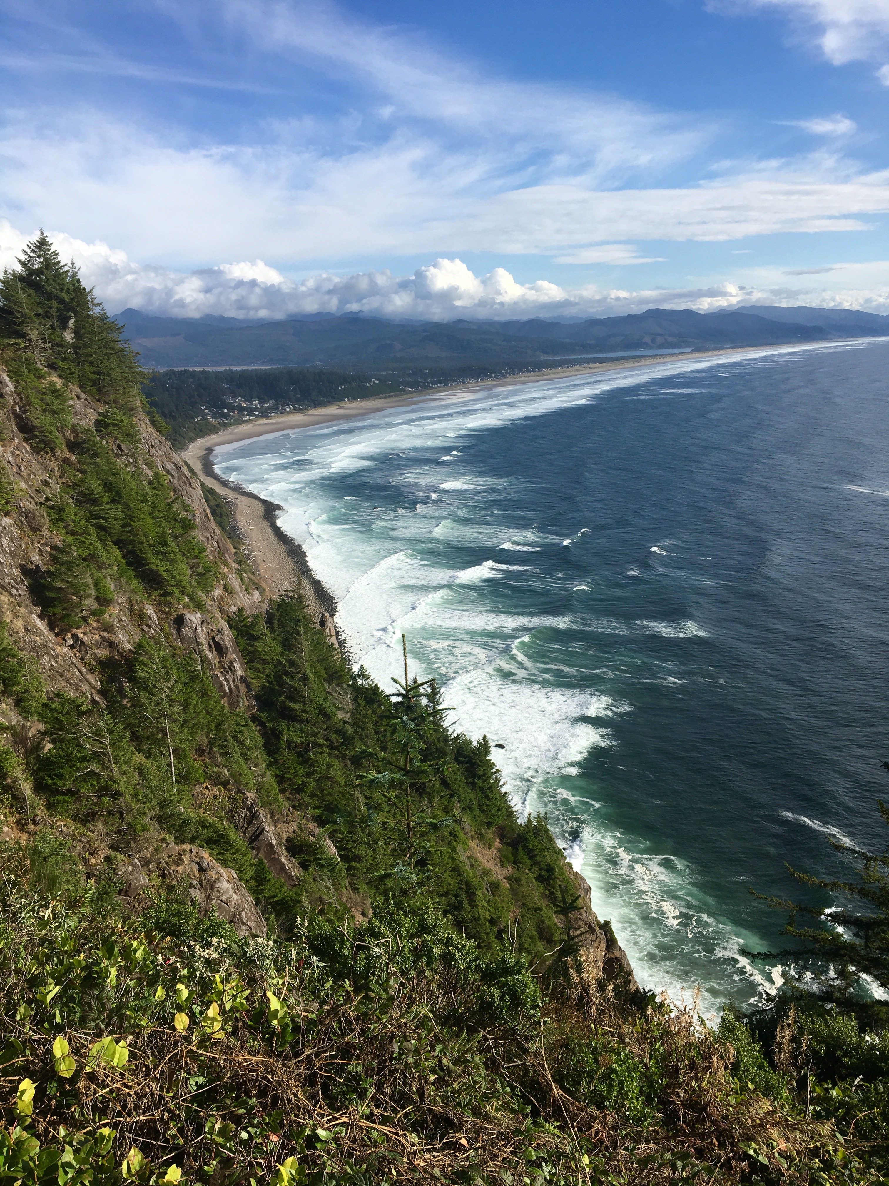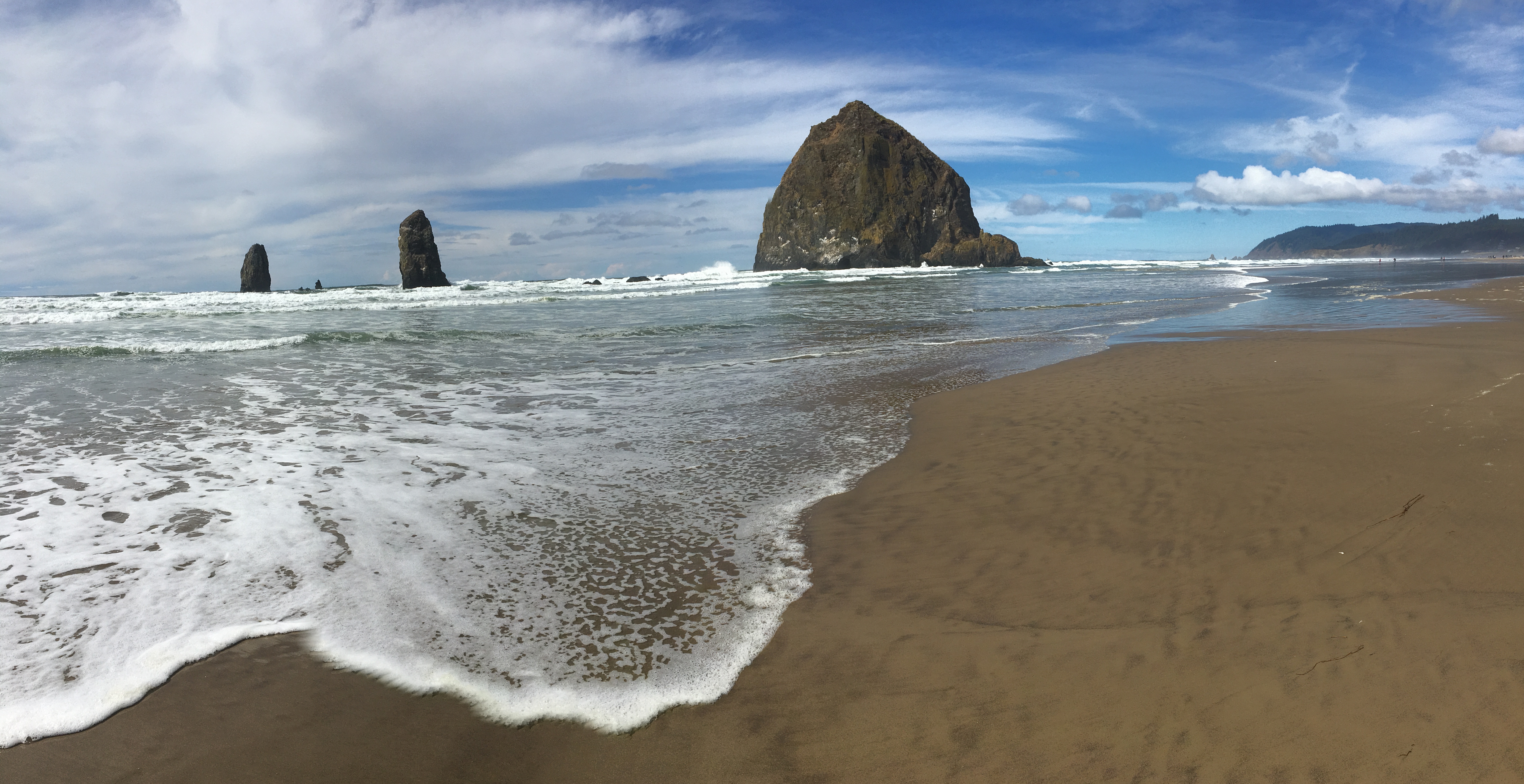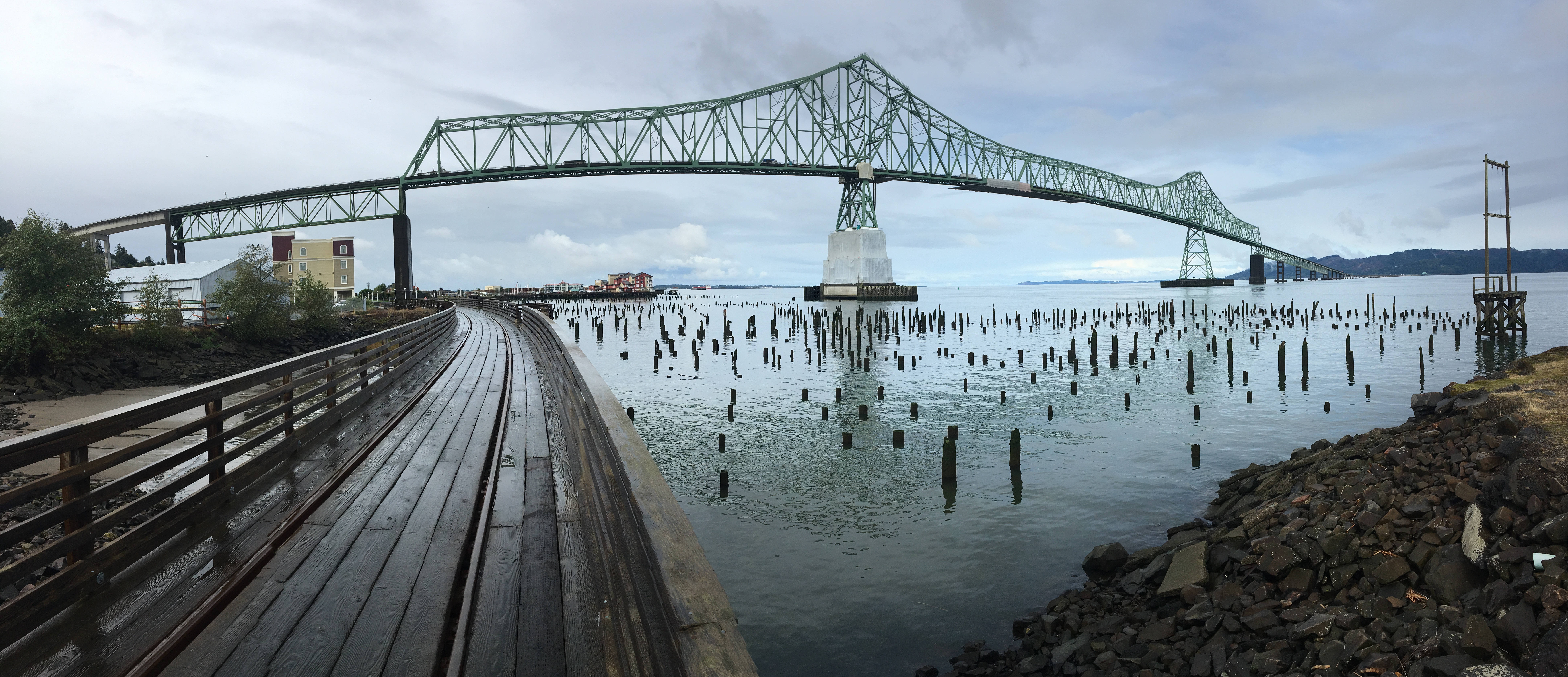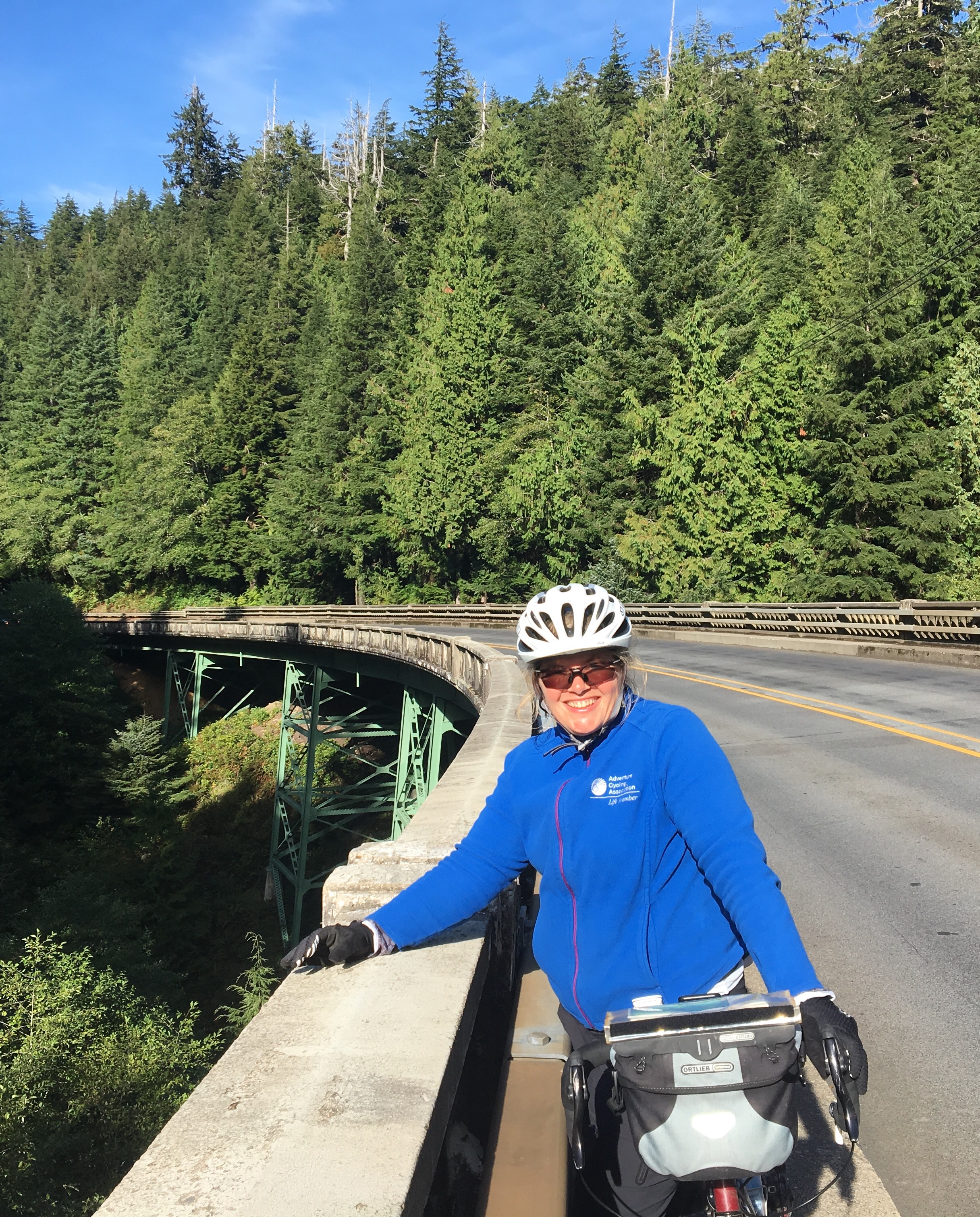 Today we woke to rain again but looked at forecast and it was supposed to stop around 11 so some of us decided to have extra coffee or tea and wait it out . It was a good decision. Around 10:30 we left and it had stopped raining and it was a nice ride under the Astoria bridge and around the Pennisula of Astoria heading across Young Bay toward Seaside. The villages have either very small cottages or very lavish homes. We stopped in Cannon Beach see the Sea stacks and had lunch. Then we stayed along the coast highway going up and down the hills to the next seaports. There were some good hills but it was quite rewarding at the top. We reached our camp around 5ish and had a nicely prepared salmon and pasta dinner followed by s’mores which we made ourselves. Our campsite is near the ocean and we can hear the surf which is very soothing although it is quite chilly. I did receive my other sleeping bag in the mail from Paul so I will see if this one works!