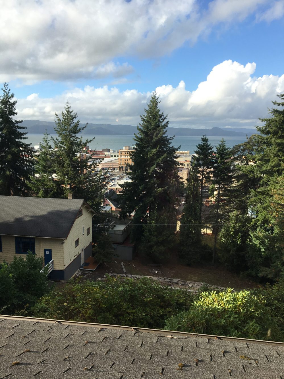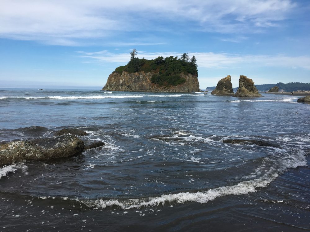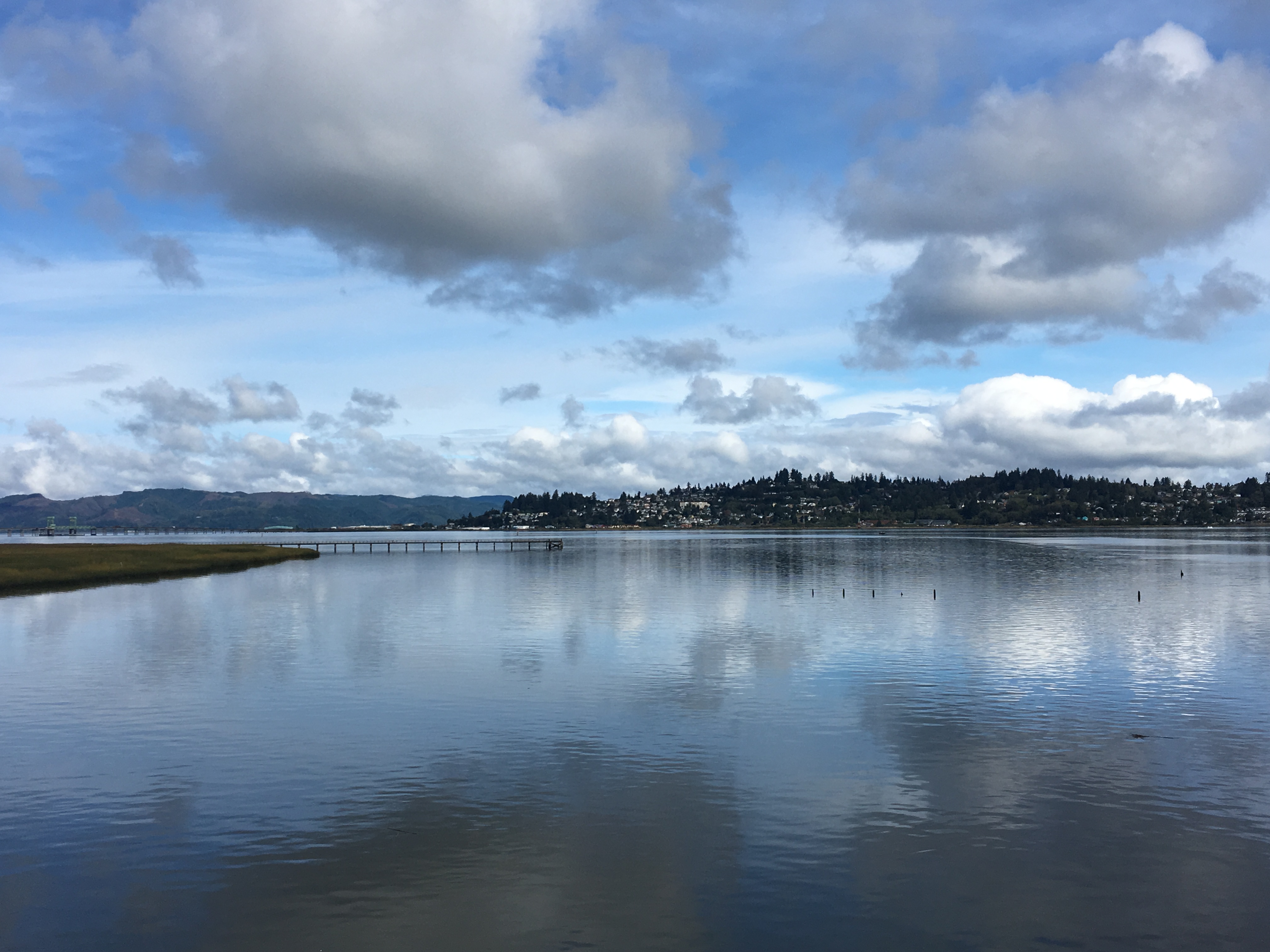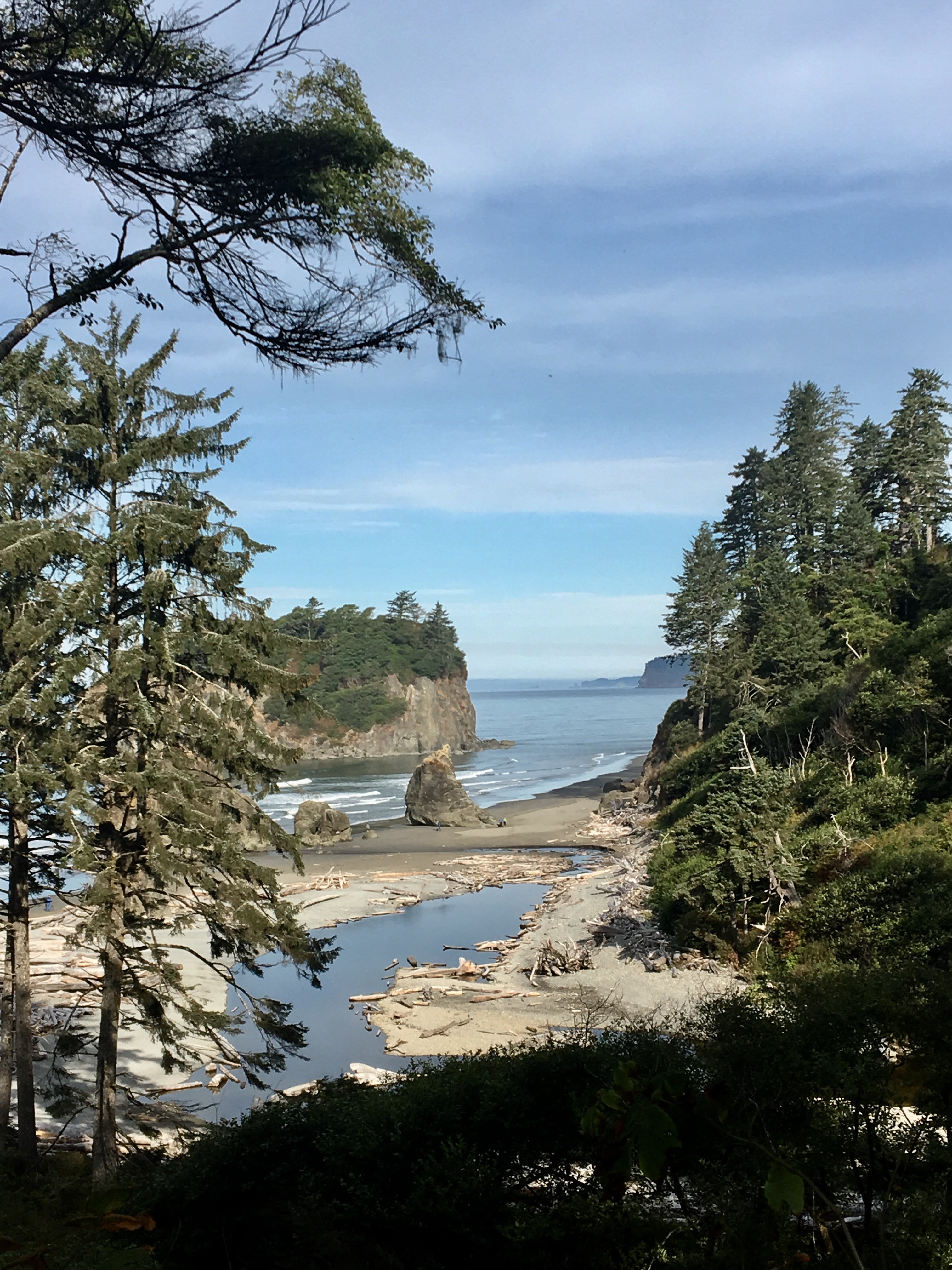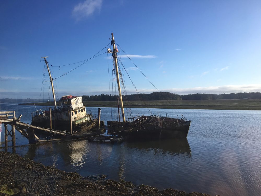 Today we woke to rain again but looked at forecast and it was supposed to stop around 11 so some of us decided to have extra coffee or tea and wait it out . It was a good decision. Around 10:30 we left and it had stopped raining and it was a nice ride under the Astoria bridge and around the Pennisula of Astoria heading across Young Bay toward Seaside. The villages have either very small cottages or very lavish homes. We stopped in Cannon Beach see the Sea stacks and had lunch. Then we stayed along the coast highway going up and down the hills to the next seaports. There were some good hills but it was quite rewarding at the top. We reached our camp around 5ish and had a nicely prepared salmon and pasta dinner followed by s’mores which we made ourselves. Our campsite is near the ocean and we can hear the surf which is very soothing although it is quite chilly. I did receive my other sleeping bag in the mail from Paul so I will see if this one works!