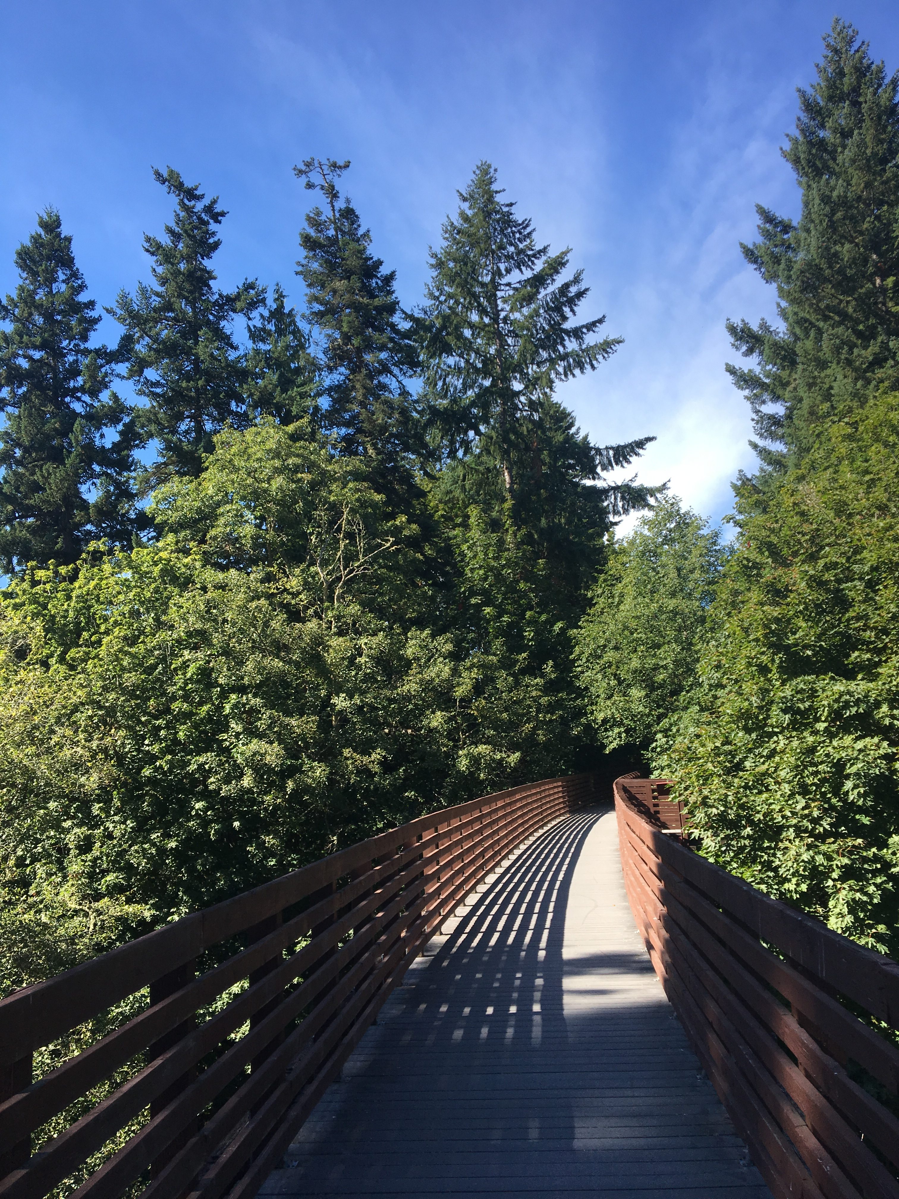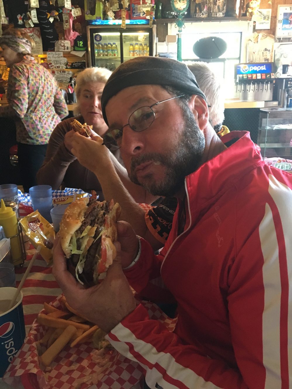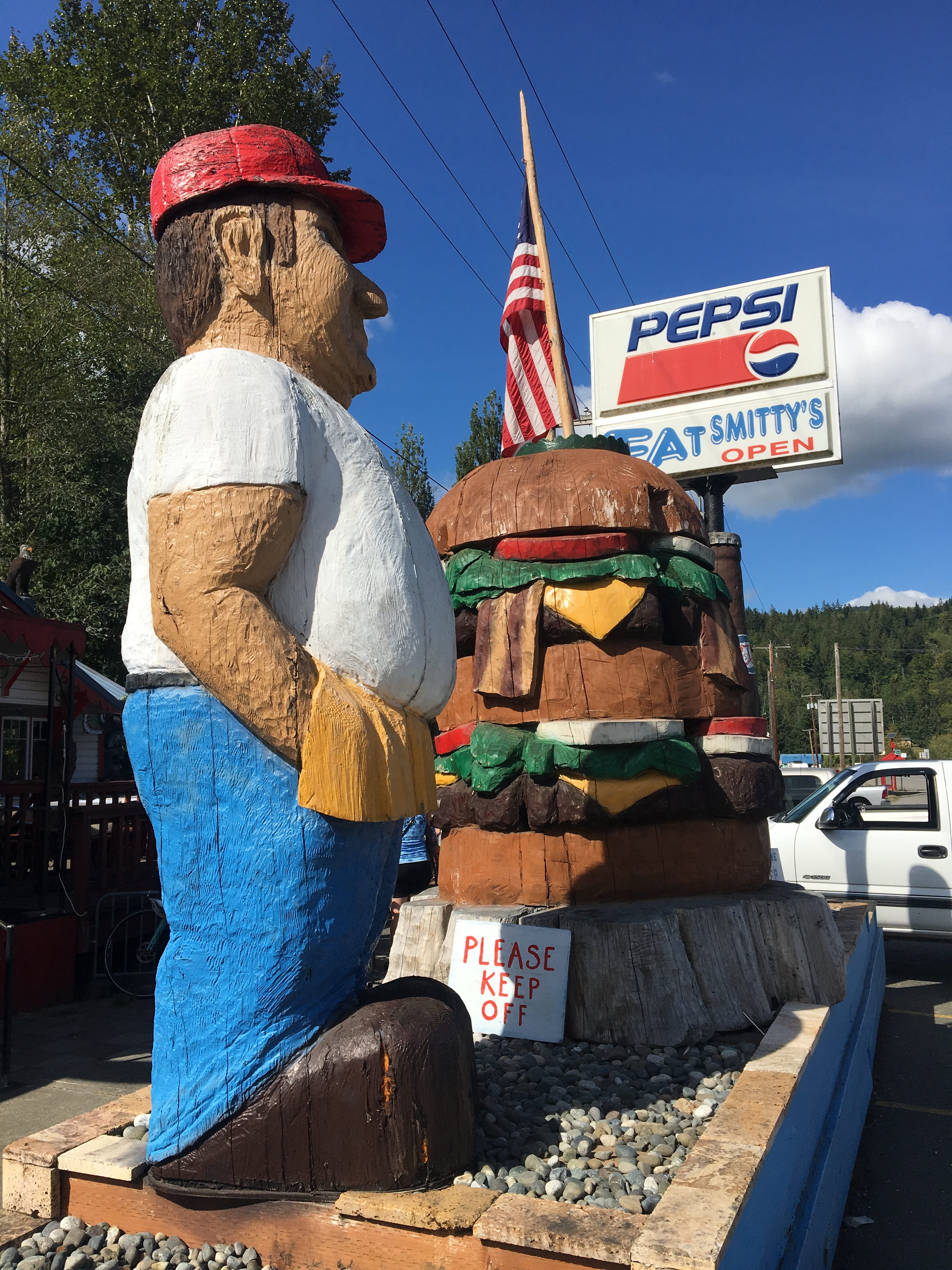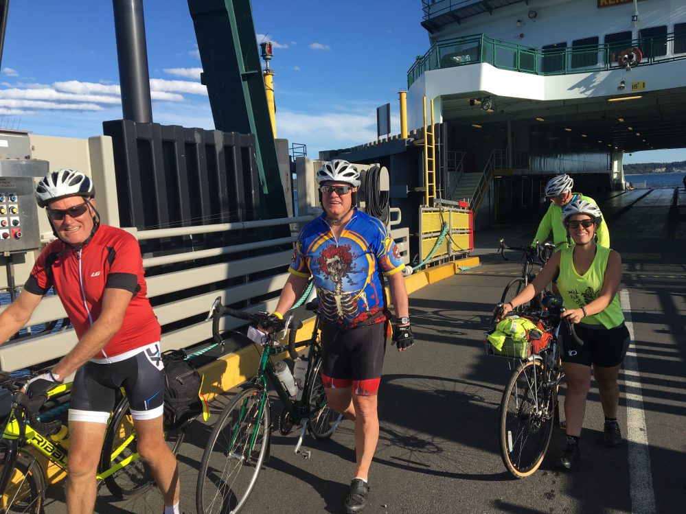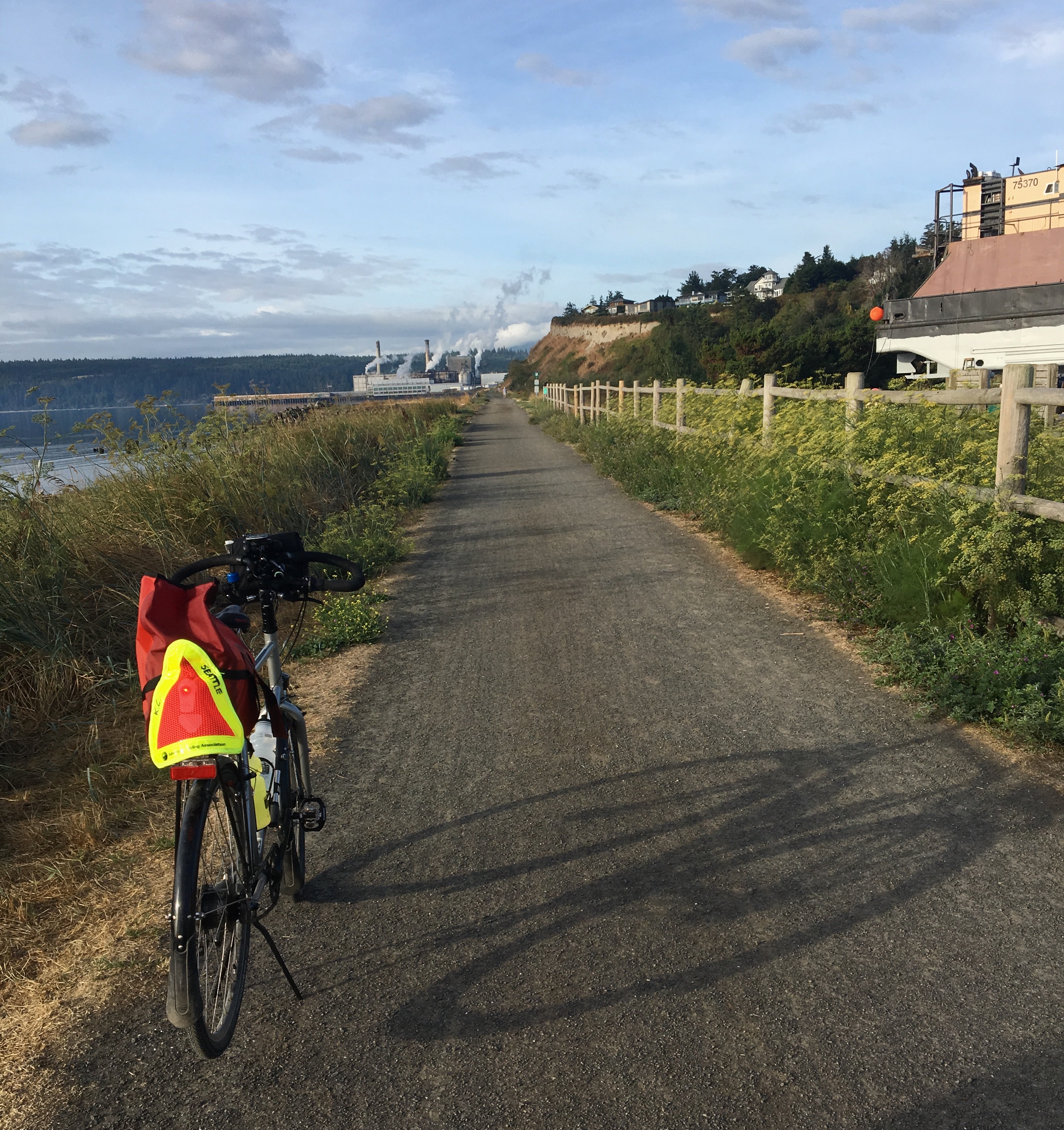 Today we left Port Townsend as a group as a lot of us didn't have the Washington maps and KC lives in Seattle and knows this area so he lead us on the ride today. We rode on the Discovery trail today which weaved in and out of the woods and across the highway. At times we road on the main roads with bike lane. We went up some good hills and equally down some. We had lunch at Fat Smittys and the burgers were McDonalds version of a Bic Mac times 5 !